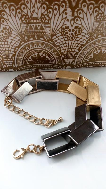 Graphic Games Bracelet Современный индустриальный стиль сошел с подиумов, чтобы найти воплощение в самых смелых образах сезона. Необычный и стильный браслет из квадратных металлических звеньев выполнен в матовых оттенках серебра, золота и латуни. Не содержит никель. Размер: 18,8 х 6 см. Новый браслет. В упаковке, в подарочном мешочке.