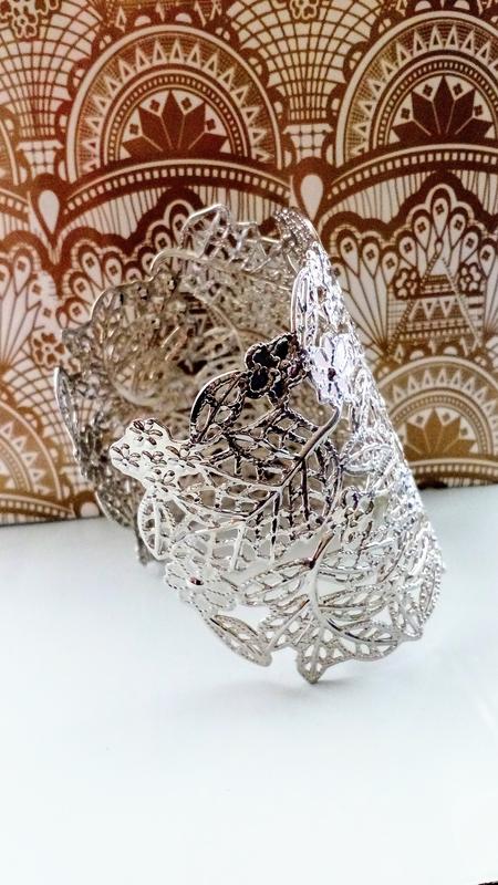 Изящный серебристый браслет с переплетением цветов и листьев из серебристого металла напомнит о безмятежности цветущего сада и станет стильным акцентом к любому наряду. Великолепный подарок себе или близкой подруге.