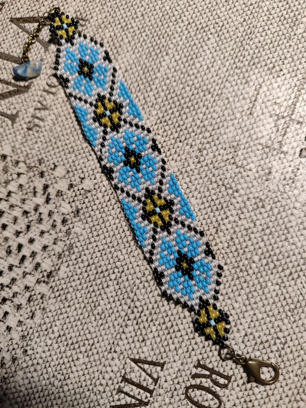 Браслет сплетений з бісеру з підвіскою. Ширина 2,4 см. Довжина регулюється від 18 до 21 см. Фурнітура "під бронзу"