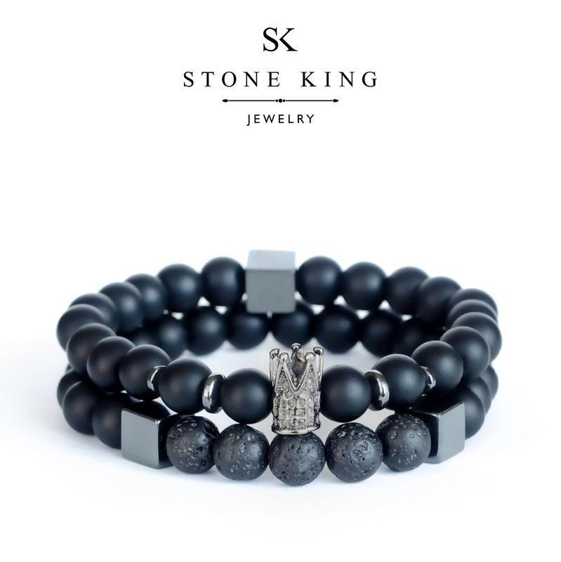 Комплект мужских браслетов "king" и "my way" из шунгита и скамьи