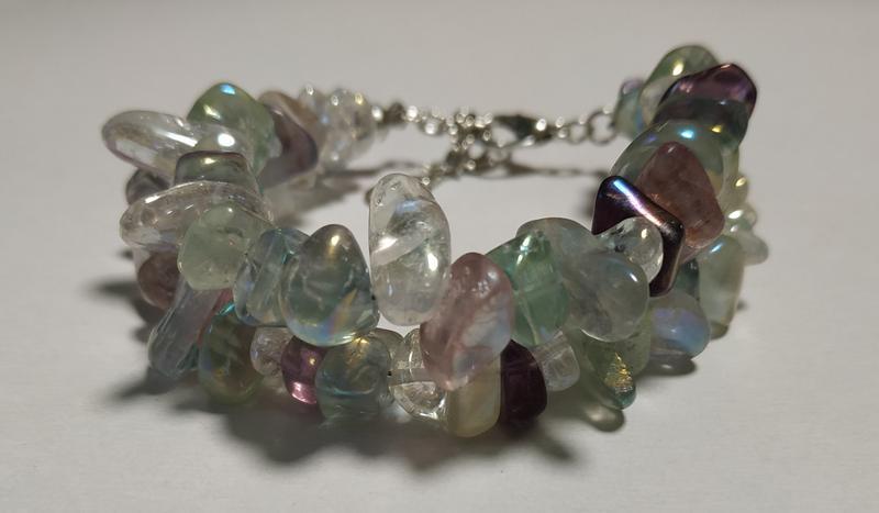 Торг Браслет на замочку (2-х рядний) з флюориту і гірського кришталю. Розмір регулюється.