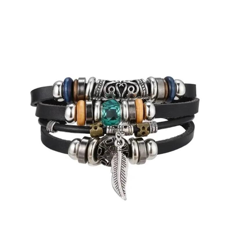 Браслет багатошаровий з підвіскою "квітка і перо" type b5