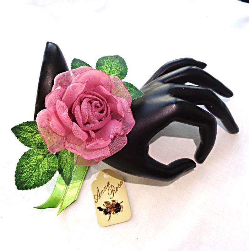 Цветы ручной работы Диаметр цветка 5-6 см. Ткань воздушная розовая. Украшен зелеными листочками Завязывается на бант розовой атласной лентой. Дополнительные характеристики: Стиль исполнения: Классицизм Стиль исполнения: Флористика Стиль исполнения: Этнический Цвет и оттенок: Зеленый Цвет и оттенок: Розовый Тематика рисунка/формы: Растения Тематика рисунка/формы: Свадьба Размер браслета (см): Регулируемый Тип браслета: Мягкий Тип: На руку
