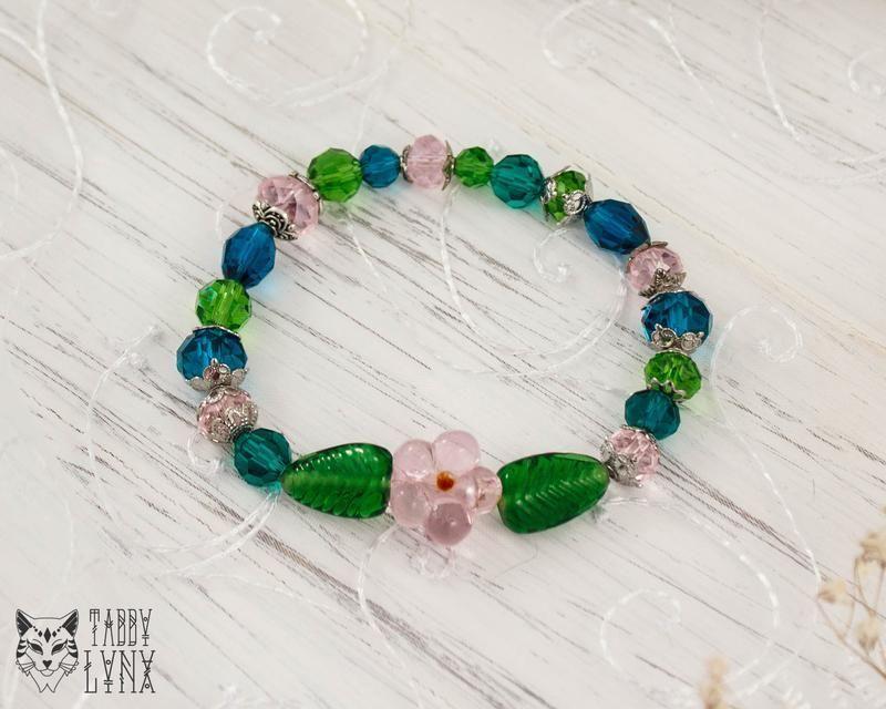 Очень светлый и сияющий браслет из хрустальных бусин муранского стекла. Прекрасно подойдёт к летнему наряду, платьям с цветочным принтом. Отличный подарок для девушки! Браслет выполнен на эластичной основе, легко надевается и снимается, размер 17.5 см. Можно сделать его меньше или больше, под ваш размер. Лучше всего смотрится в сочетании с серьгами "Цветочный сад" ****************************************************** Дополнительные характеристики: Цвет : Голубой Цвет : Зеленый Цвет : Розовый Материал : Бусины
