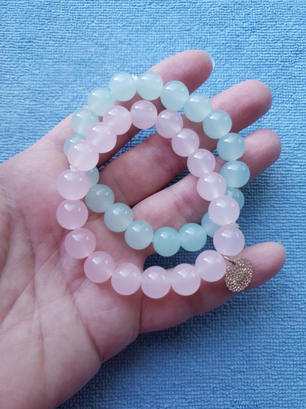 Набор из двух браслетов. Розовый кварц и аквамарин. На силиконовой резинке. Замеры на фото. Состояние нового.