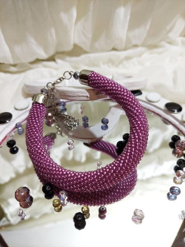 Браслет из бисера. Ручная работа. Выполнен из качественного чешского бисера. Толщина 10 мм. Застежка карабин с удлинительной цепочкой (в обхвате с 20 до 26 см). Оплата после получения или предоплата. Доставка Новой Почтой бесплатно. Дополнительные характеристики: Цвет : Фиолетовый Материал : Бисер