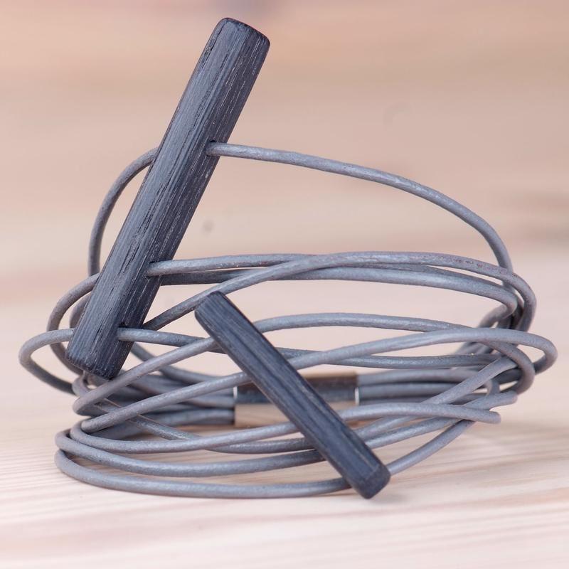Браслет из массива вороненого дуба и натуральной кожи с магнитной застежкой из нержавеющей стали Деревянные элементы перемещаются по кожаным шнурам, образуя разные конфигурации Авторский дизайн Необычный вид Яркий штрих в вашем образе Изысканный и демократичный одновременно Коллекция «Моё время» Подарочная коробочка в комплекте Товар под заказ