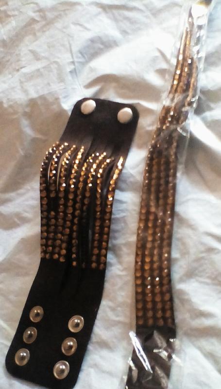 Натуральная кожа стразы длина колье 70см браслет 21нехватает 5 стразиков