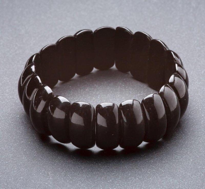 Браслет на резинке черный пресс. Агат "звено" 22х8мм