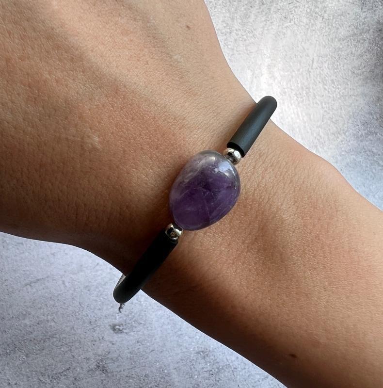 Жіночий браслет з натуральним аметистом. стильний браслет з натуральним камінням.