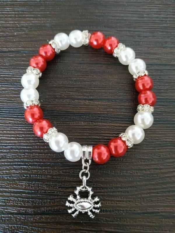Браслет на силиконовой резинке, из акриловых бусин с подвеской – краб. 16,5 см.