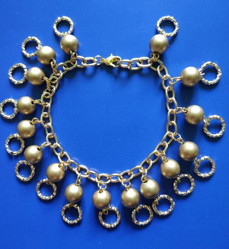 Браслет на цепочке из лакированных матовых бусин и алюминиевых колец. На любой размер. Максимальный – 22 см. Можно и на ножку.