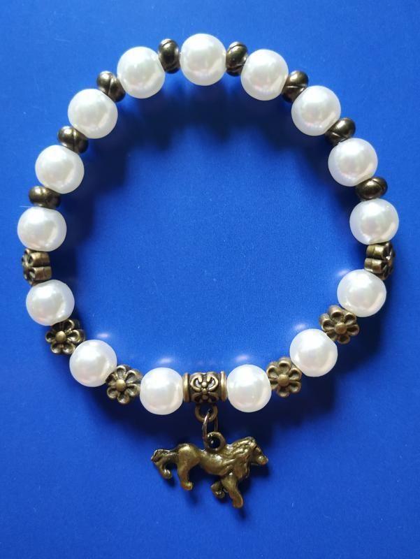 Браслет из акриловых бусин, на резинке, со львом. 18 см. Дополнительные характеристики: Цвет : Белый