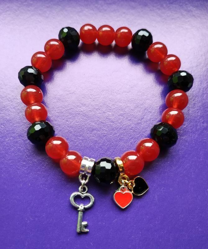 Браслет на резинке из чешского чёрного стекла и бусин "под нефрит", с подвесками. 17,5 см. Дополнительные характеристики: Материал : Бусины