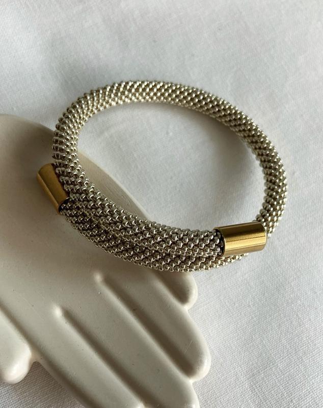 Браслет ▫️ювелірний японський бісер Miyuki зі стійким покриттям ▫️якісна фурнітура з нержавіючої сталі (гіпоалергенний матеріал, не темніє, не лущиться) ▫️діаметр браслету 65 мм ▫️товщина 6 мм ▫️основа - сталева меморі проволока (браслет завжди тримає форму) ▫️колір білого золота ▫️можливий повтор браслета в кольорі жовтого класичного золота