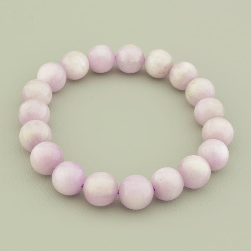 Артикул: 122708 Размер камня Вес: 37,6 г. Диаметр: 10,5 мм. Длина: 19 см. Камень: Кунцит(нат.) Качество: Единичный экземпляр Комментарий: Размер камня +/- Тип замочка: Без замка (Резинка) Форма товара1: Шарик Цвет: Сиреневый