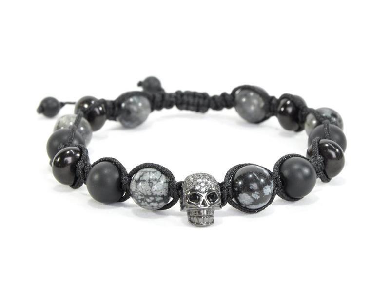 💀Мужской браслет с черепом с фианитами. Камни 10 мм: обсидиан, шунгит, гагат. На объём руки 18-19 см. #мужскойбраслет #купитьмужскойбраслет #браслетизкамнейукраина #чоловічібраслети