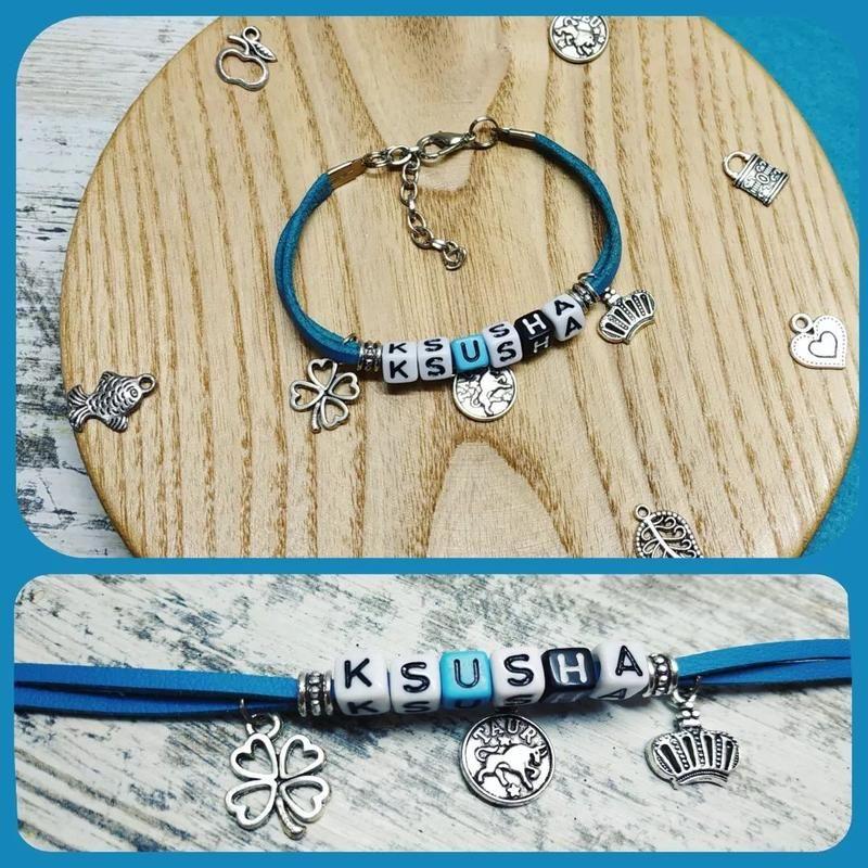 В ціну входить браслет з ім'ям 6 букви та 3 підвіски. Додаткова буква + 2,5 грн. Додаткова підвіска + 5 грн. Для замовлення пишіть в Direct #іменнібраслети Товар под заказ