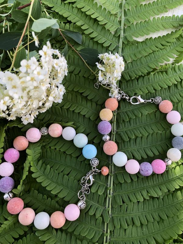 Браслет на руку из бусин морозного Агата На струне, регулируется замочек Цена за 1 шт
