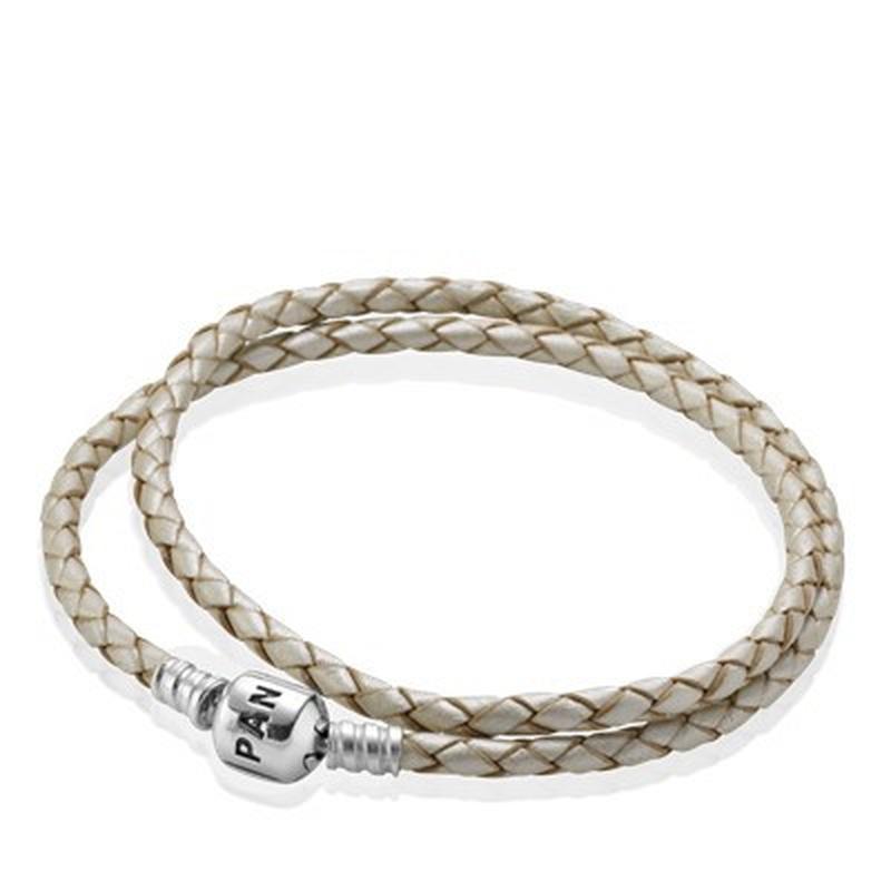 Кожаный двойной плетённый браслет для шармов пандора 590705cpl-d