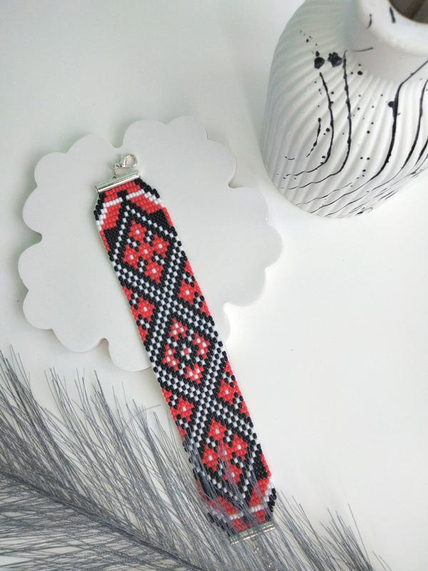 Браслет ручной работы. Выполнен из качественного чешского бисера. Длина: 15.5 см(+5 см цепочка),Ширина: 3 см. Детали запрашивайте в уведомлениях, с радостью ответьте! Возможно выполнение по вашему образу. Смотрите другие наши объявления, оказывает большой ассортимент и хорошие скидки в сетях Creative Dreams!Подписывайтесь!!
