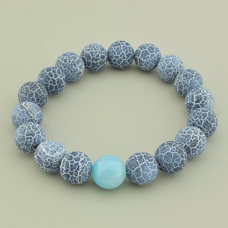 Артикул: 122426 Розмір каменю Бренд: SUNSTONES Тип замочка: Без замка (Резинка) Довжина: 18 см. Діаметр: 11,5 мм. Якість: гарна Камінь: Агат (нат.) Колір: Синій Колір: Блакитний Форма товару: Кулька Вага: 34,7 г.