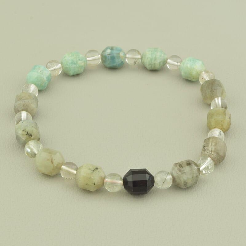 Браслет лабрадор,амазонит,горный хрусталь 21 см.