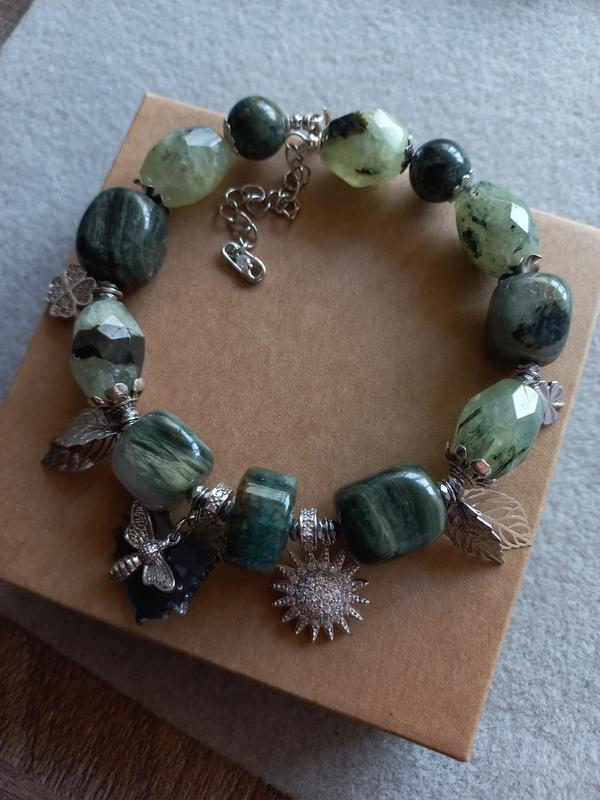 Браслет "Флора" Агат, яшма, принит, премиальная фурнитура инкрустированная фианитами. Размер индивидуален + 7 см цепочка-удлинитель. Браслет на мемори проводе. Важно!!!! После платья нет! Оплата на счет ФОП