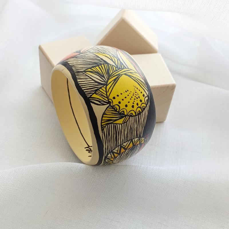 Откройте для себя изысканный древесный браслет, тщательно изготовленный вручную с любовью и вниманием к деталям. Этот универсальный браслет идеально подходит для отдельной носки или многослойности, позволяя создать завораживающий и уникальный образ, который отражает ваш стиль. Каждый браслет тщательно изготовлен вручную с использованием ярких цветов. Я надеваю приоритет комфорта, поэтому эти браслеты обеспечивают легкое и комфортное ощущение вашей кожи во время носки в течение всего дня. Независимо от того, хотите ли вы угостить себя или удивить свободнолюбительного любимого, этот браслет из дерева станет весомым подарком. Его индивидуальность делает его ценным сувениром на память, символизируя красоту природы и любовь, стоящую за этим жестом. Детали продукта: Материалы: мягкое и легкое дерево Бук, акриловые краски. Техника: ручная роспись Ширина браслета: 5 см. Внутренний диаметр: 7 см