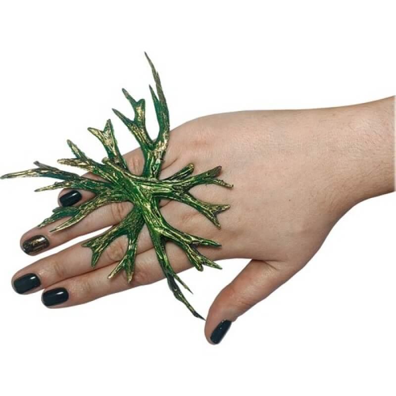 ПЕРСТЕНЬ ЭЛЬФИЙКА 23-517GR Материал: металл, пластик Цвет: зелёный Размер универсальный. Оригинальный перстень в форме веток, для создания образа лесной нимфы, эльфийки.