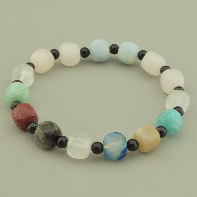 Артикул: 124434 Размер камня: 9х9 мм. Бренд: SUNSTONES Тип замочка: Без замка (Резинка) Длина: 18 см. Диаметр: 4,5 мм. Качество: Хорошее Камень: Самоцветы(нат.) Цвет: Разноцветный Форма товара1: Грань Форма товара2: Шарик Вес: 20 г.
