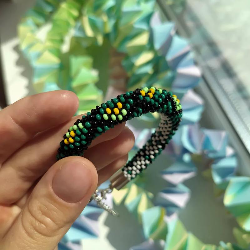 Браслет ручной работы из бусера, в кругу 8 бисеринок. Длина регулируется от 17 до 23 см