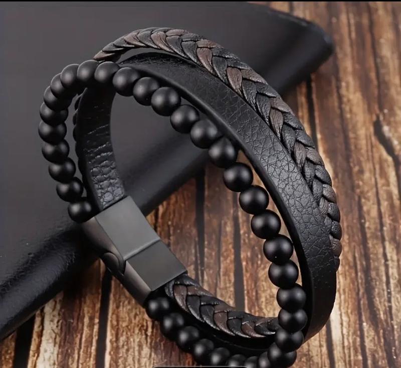 Трехслойный браслет из искусственной кожи, с бусинами и магнитным замком
