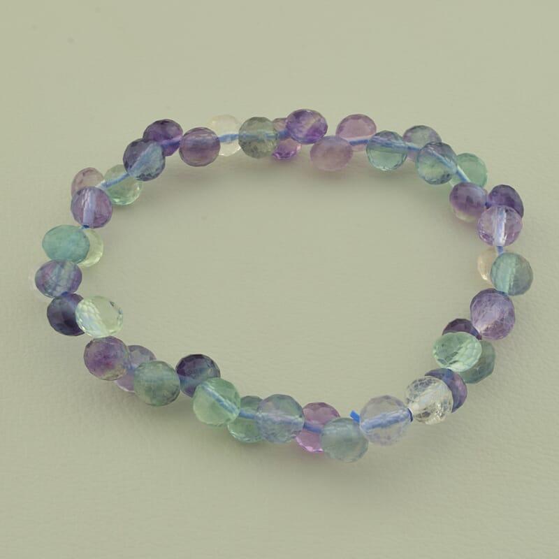 Артикул: 123060 Размер камня: 6х5 мм. Бренд: SUNSTONES Тип замочка: Без замка (Резинка) Длина: 18 см. Качество: Хорошее Камень: Флюорит(нат.) Цвет: Фиолетовый Цвет2: Зеленый Форма товара1: Грань Вес: 12,5 г.