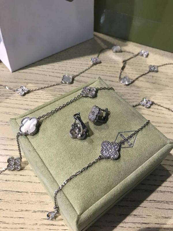 Элегантные и стильные украшения стиль Ванклиф, клевер. Браслет на 1 или 5 элементов. На всех браслетах есть гравировка и проба. Браслет можно приобрести комплектами с кольцами, серьгами и подвесками. Серьги есть гвоздики или английский замок. Серьги имеются на 1, 2, 3 или 4 элемента. Все украшения можно приобрести в подарочной упаковке.
