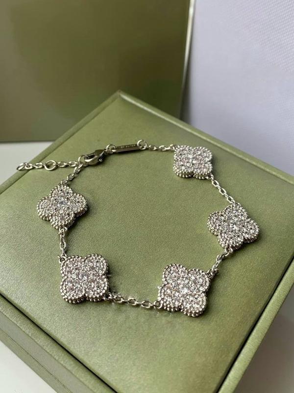 Элегантные и стильные украшения стиль Ванклиф, клевер. Браслет на 1 или 5 элементов. На всех браслетах есть гравировка и проба. Браслет можно приобрести комплектами с кольцами, серьгами и подвесками. Серьги есть гвоздики или английский замок. Серьги имеются на 1, 2, 3 или 4 элемента. Все украшения можно приобрести в подарочной упаковке.