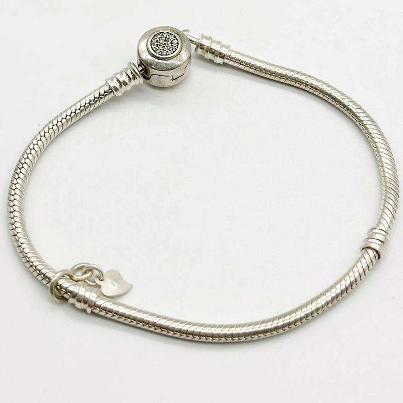 Серебряный браслет в стиле "pandora" со вставкой фианит, размер 19 см x 0,3 см, вес: 14.9...