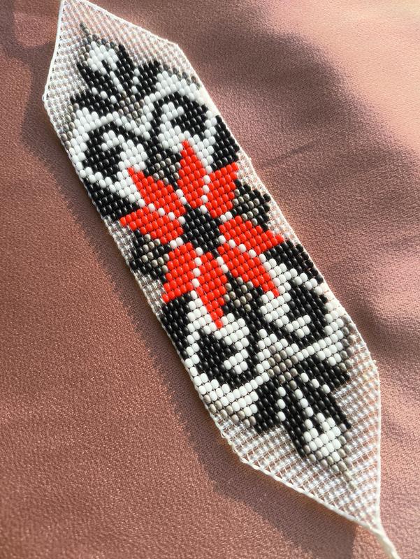 Браслет из бисера на руку. Красная звезда на прозрачном фоне. Фото не передает всей красоты