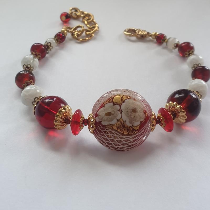 Браслет из дорогой серии муранского стекла. Потрясающе красивая центральная бусина с многомерным рисунком.