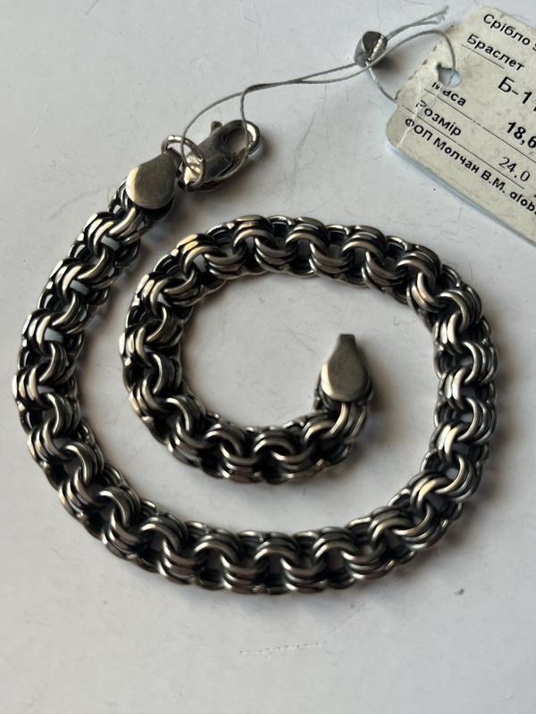 Ликвидация магазина, все в одном экземпляре и размере. Все изделия отечественного производства, отделанные и обломывающиеся Цены на бирках указаны по курсу 28грн. не пересчитывалось по новому курсу. Кто хочет приобрести серебряные качественные украшения по цене бижутерии, включите! Осталось мало. ***************************************************************************** Серебряный массивный браслет, интересного плетения, покрытие родием. Производитель : Украина GLOBAL Вага - 18.68г. Размер 24