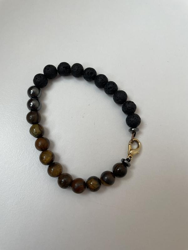 20,5 см. 8 мм. бусина, тигровый глаз/ гематит/ лавовый камень