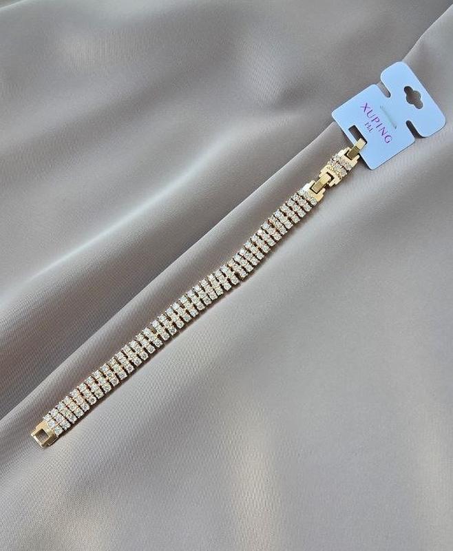 Вечернее украшение браслет,инкрустированный качественными камушками фианитами, которые невероятно сияют на солнышке и при искусственном освещении. Имеет регулировку полноты кисти, что подходит, как для тонкой так толстой ручки.