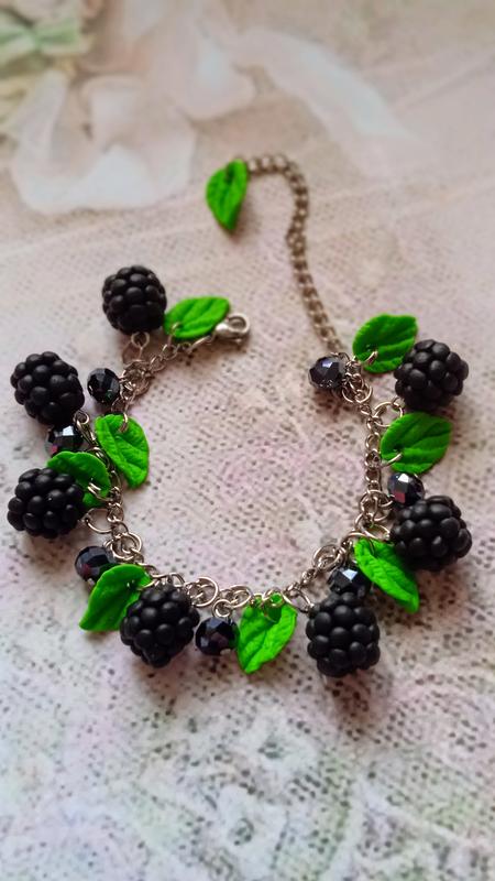 Браслет ежевика сделан из полимерной глины ручная работа. Фурнитура нержавеющая сталь, бусины хрустальные.