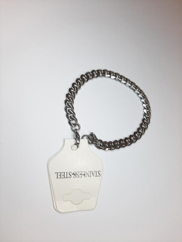 Мужской браслет-цепочка из качественной нержавеющей стали с классической застежкой (карабин). Цвет - серебро. На руке смотрятся очень стильно. Важкі. Большие, массивные звенья. Качественная отделка. Долго носятся, не ржавеет, не темнеет, не боится воды и не вызывает аллергии. Размеры: Длина - 21 см Ширина – 7 мм.