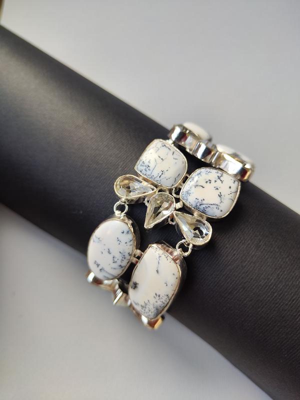 Браслет з гірським кришталем та дендроопалом. гірський кришталь на дендро-опал в сріблі. і...