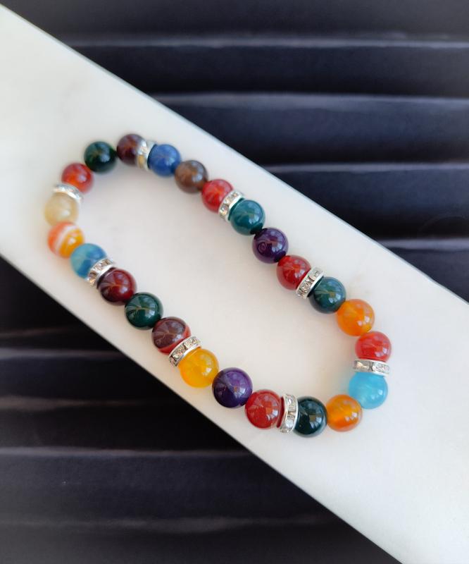 Браслет різнокольоровий агат. браслет з агату на гумці (резинці).