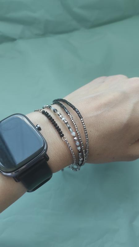 Нежные браслетика на руку, могут быть как одно шаровое, так и в нескольких слоев. Изготовлены из ювелирно бисера и цепочек.