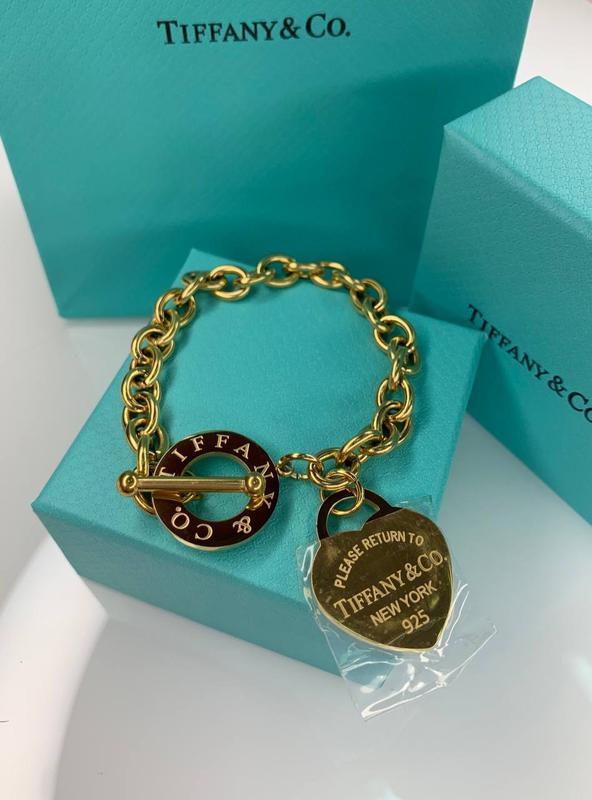 Тиффани браслет крупная цепь с сердцем. позолота 18 к. мешочек тиффани. идеально на подаро...