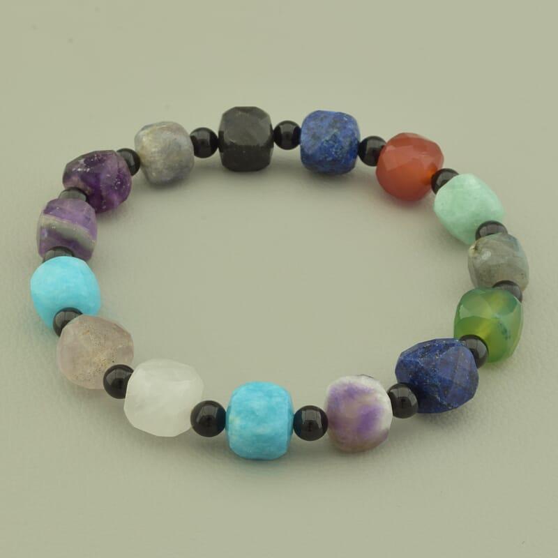 Артикул: 124432 Размер камня: 9х9 мм. Бренд: SUNSTONES Тип замочка: Без замка (Резинка) Длина: 18 см. Диаметр: 4,5 мм. Качество: Хорошее Камень: Самоцветы(нат.) Цвет: Разноцветный Форма товара1: Грань Форма товара2: Шарик Вес: 19,6 г.