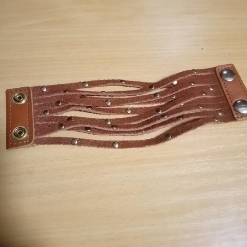 Замшевый браслет с металлическими вставками и кожаными застежками на кнопках.На объем запястья до 17 см. Ширина 5 см., длина 20 см в расстегнутом состоянии. Торг.